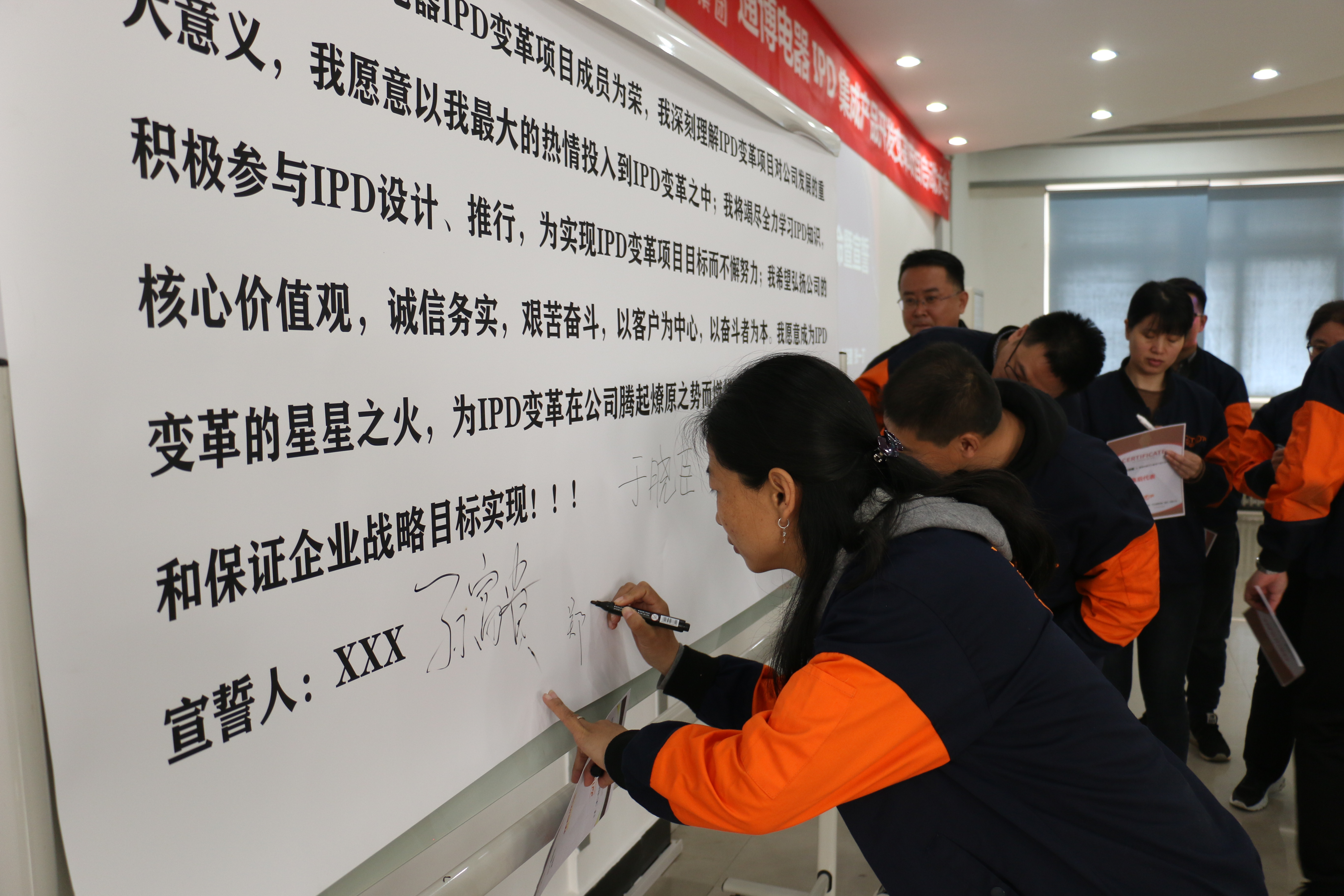 儀式上,總經(jīng)理張一丁女士宣布了通博電器IPD集成產(chǎn)品開發(fā)變革項目的委員會成員和項目組人員任命,所有成員確認(rèn)各自的職責(zé),并宣誓,誓言是對自己承擔(dān)責(zé)任和義務(wù)的明確,也表明企業(yè)在IPD項目實現(xiàn)上的決心和堅定。